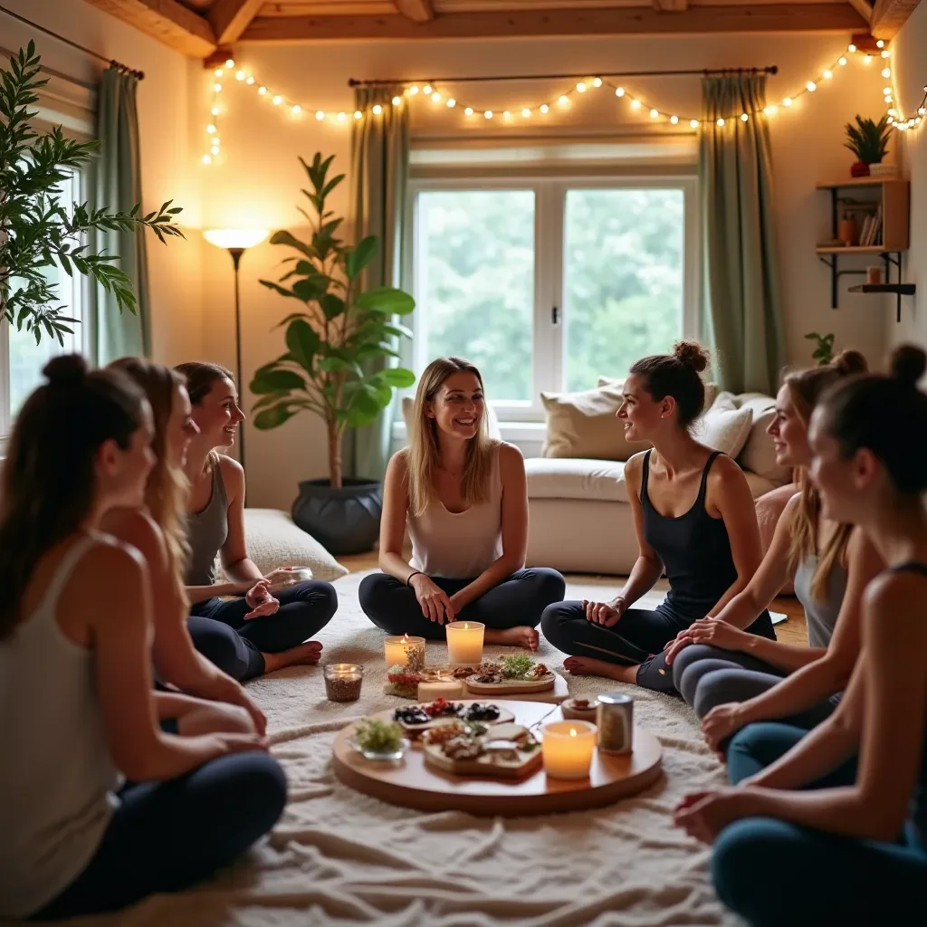 Participa en nuestros talleres mensuales donde abordamos temas de bienestar femenino, auto-cuidado y yoga. Incluye materiales y recursos para prácticas en casa.